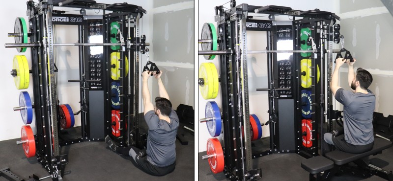 Now you may already know this from reading my G6 in-depth review, but you also have the option to do lat pulldowns on just one side of the machine using a single weight stack, BUT going beyond the max resistance of the weight stack. There’s two options for this: